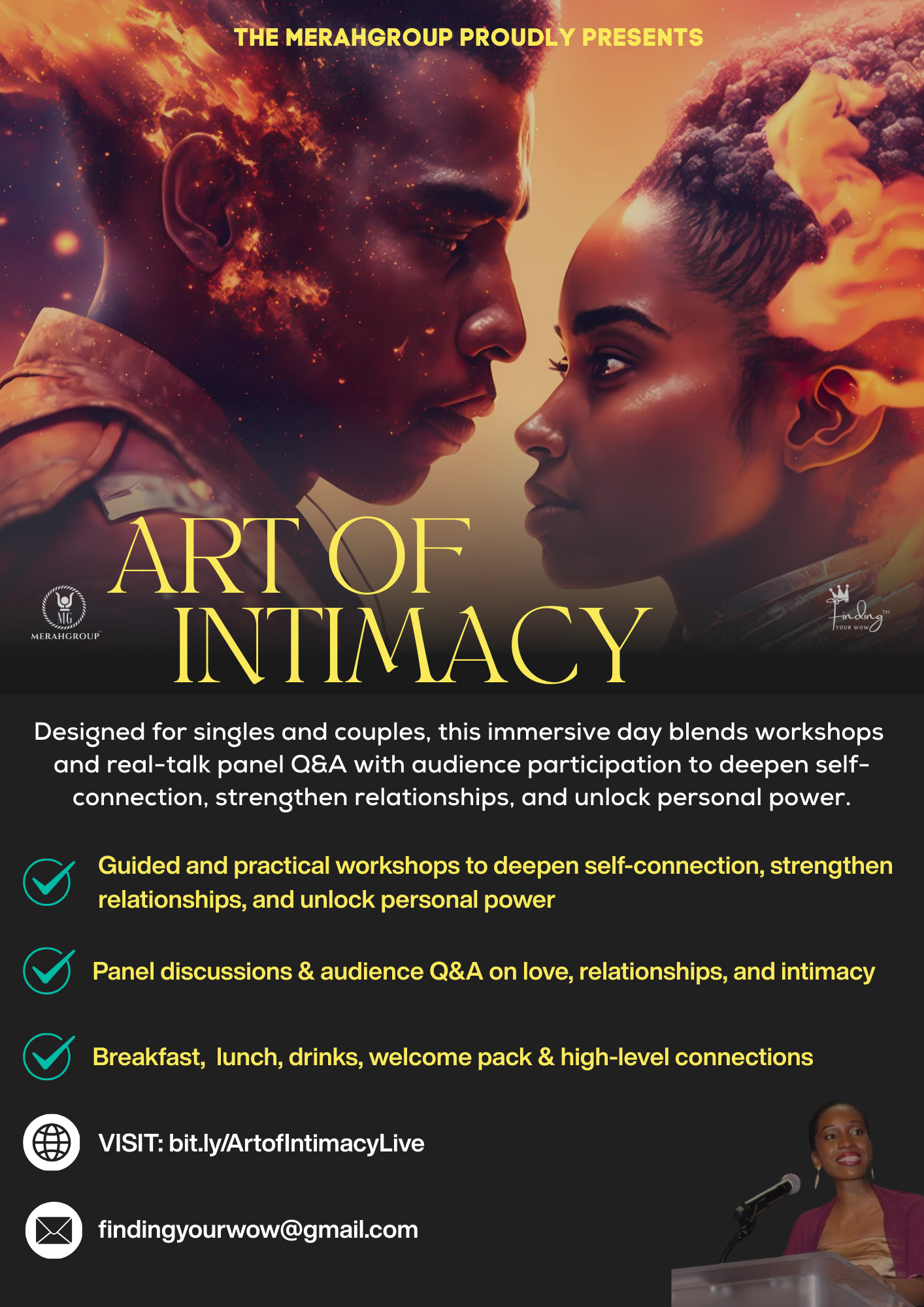 Particularly in my professional life over the years and in past relationships, I’ve supported so many to realise their goals whilst quietly navigating my own experiences of burnout, imposter syndrome, and the longing for deeper connection. That lived experience shapes how I lead — with compassion, clarity, and The Art of Intimacy Live was created in response to a growing need I see in our community: a need for honest, culturally grounded conversations about love, dating, relationships, and intimacy — and a space where singles and couples alike can pause, reflect, and grow together.