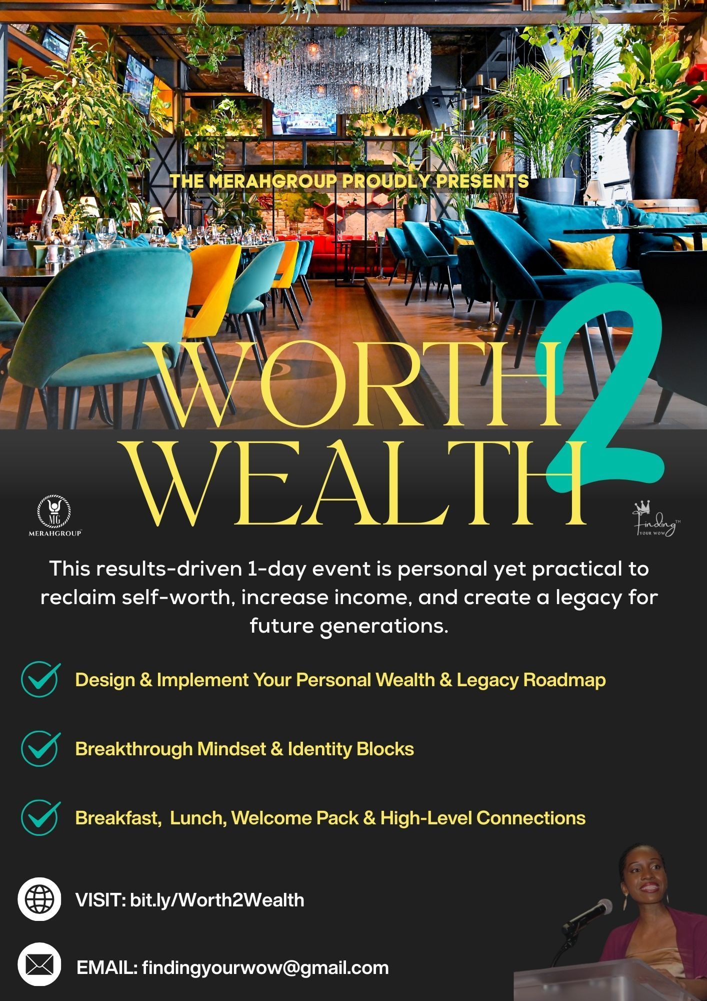 A powerful 1-day experience to map your wealth journey, break mindset blocks, and make great connections over good food and empowering conversations.