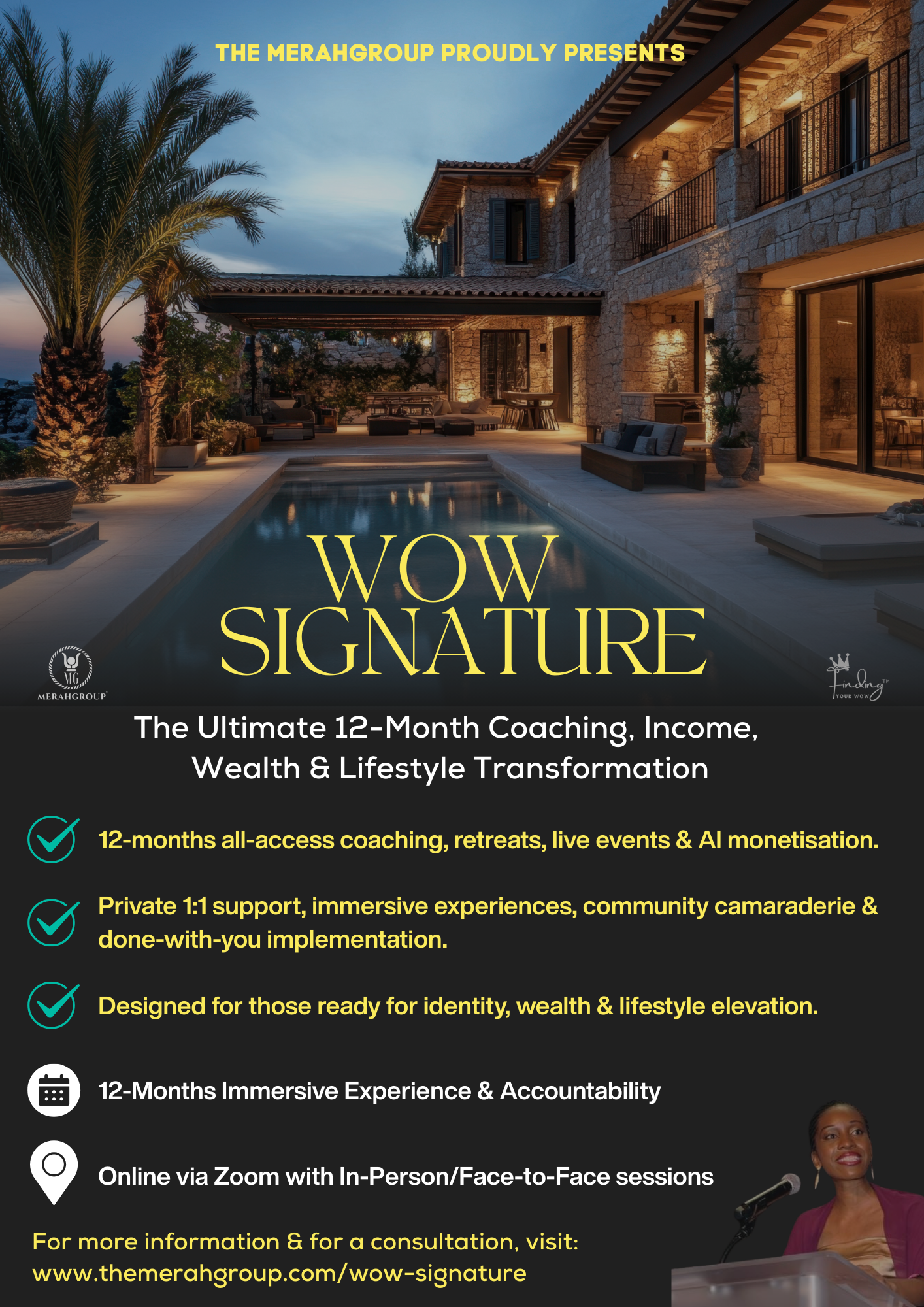 WOW Signature Experience™ is a private, highly personalised immersive experience over 12 months. To protect the integrity of the programme and to ensure it is the right fit for both of us, enrolment is by consultation only.